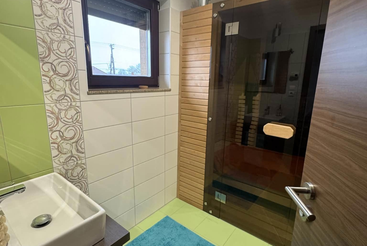 FELSŐ SZINT: 2 külön nyíló szoba, előtér, fürdő + WC , saját szauna – a mindennapi wellness élményért